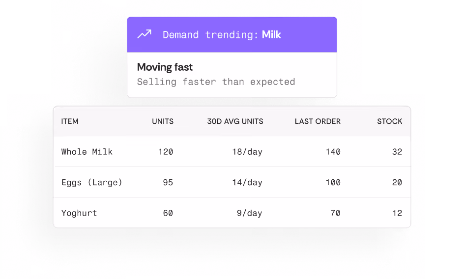 Build multi-vendor orders in one pass, order from real sales movement, and standardize how your team builds orders.